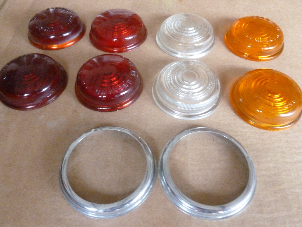 We have these glass lenses in dark and light red, clear glass and amber for the flashing indicator lights.